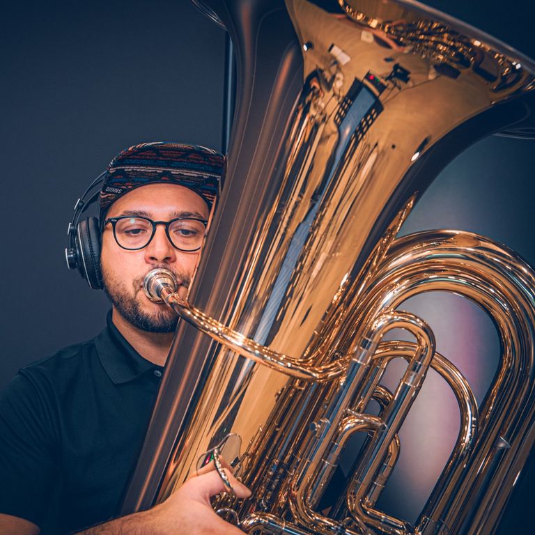 "Seit meiner Kindheit habe ich Oboe gespielt. Irgendwann hat unser einziger Tubist den Musikverein verlassen und die Frage nach einem Nachfolger stand im Raum. Ohne lange zu überlegen habe ich die Hand gehoben und es seither noch keinen Tag bereut. Ich liebe gefühlvolle Balladen, aber auch die eingängigen Basslines von unseren Pop-Stücken machen richtig Spaß."